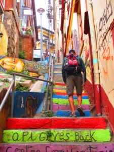 Valparaiso is located two hours to the west of Santiago on the Pacific Ocean. The city is wedged into the hillside along the coast. We had a fantastic time walking up and down the myriad of staircases and windy alleyways to explore different neighborhoods.